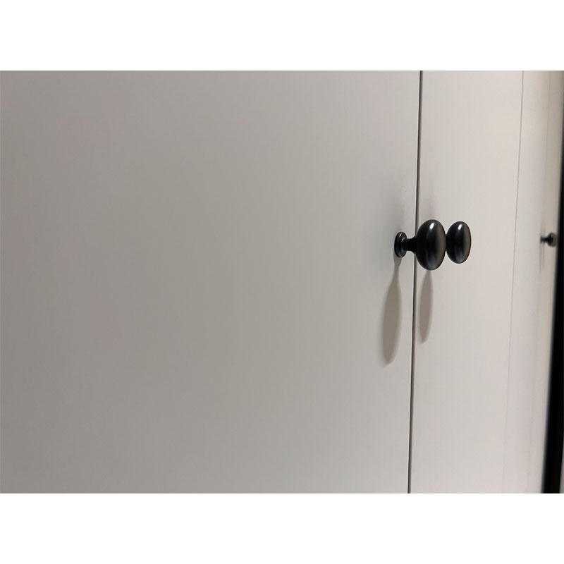 Kapalı dolaplar nevresim, mont ve sezon dışı kıyafetleri saklamak için kullanılabilir. Küçük yuvarlak siyah kulplar sevimlidir ve vestiyere canlılık katar.