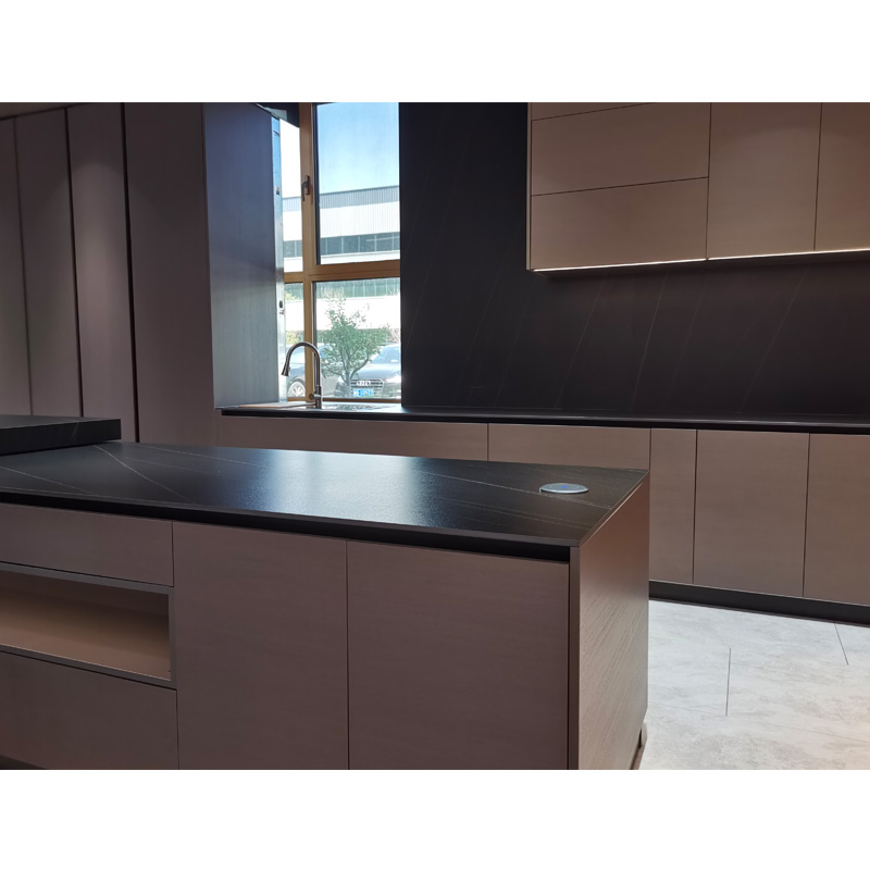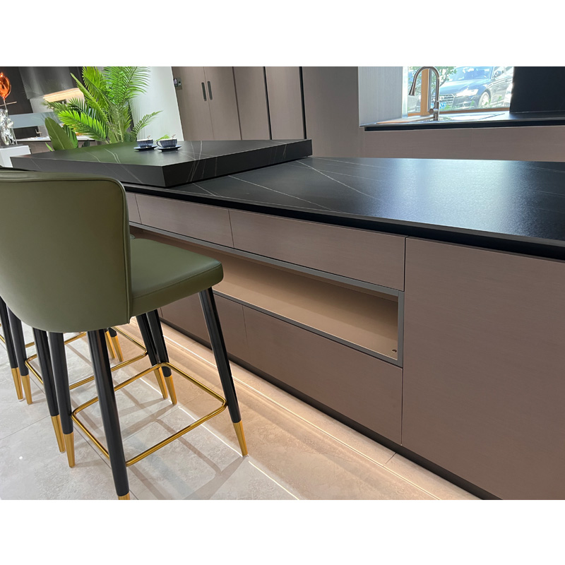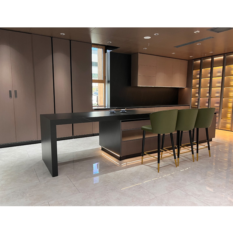 Bu akıllı mutfak dolapları, cam mutfak dolapları, kahverengi mutfak dolapları ve cam mutfak dolapları ile l-şekilli lüks mutfak dolapları, yemek pişirirken size hafif bir lüks deneyimler sunmak için tasarım açısından harika arkadaşlar. Kiler dolapları, tüm mutfak takımlarınızı içerecek şekilde optimize edilmiştir. .