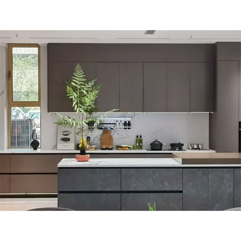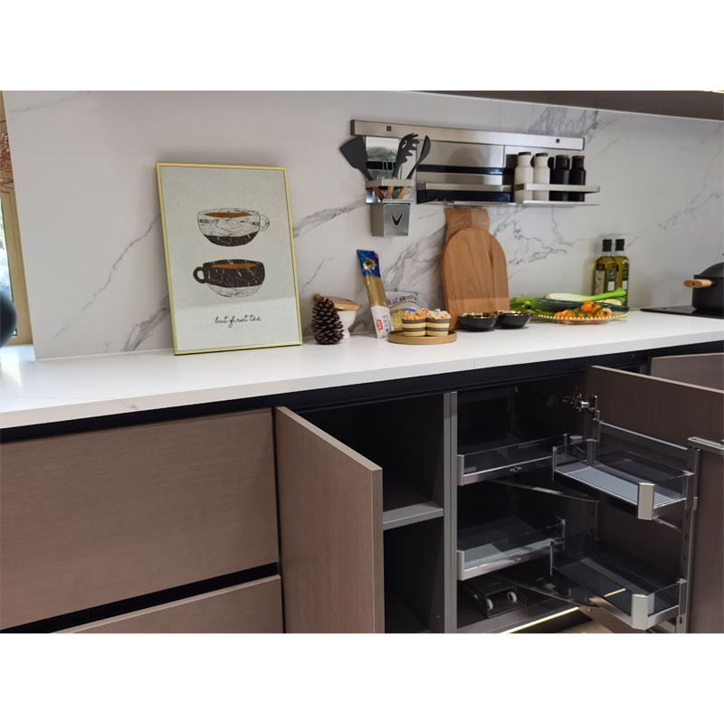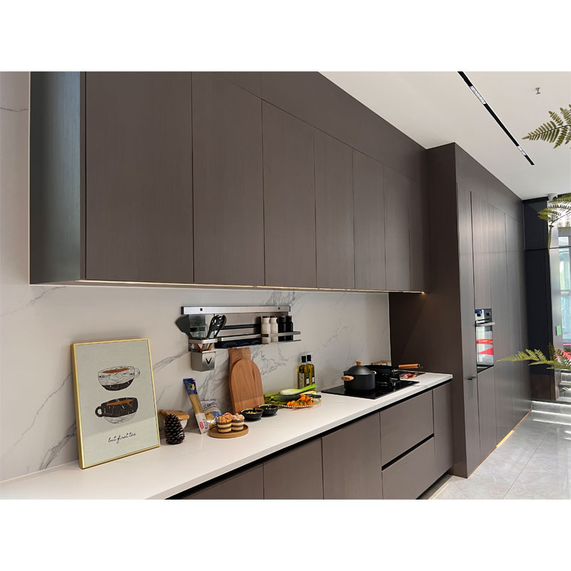 Akıllı mutfak üst düzey Laminat mutfak dolapları, baştan sona ana renk olarak kahverengiyi kullanır ve mat doku, görsel ve el hissi açısından daha gelişmiştir. Hem normal hem de geleneksel olmayan boyutlar mevcuttur ve l-, L- ve U-şekilli dolaplar, ücretsiz dolap ve tezgah üstü malzeme ve renk seçenekleriyle özelleştirilebilir.