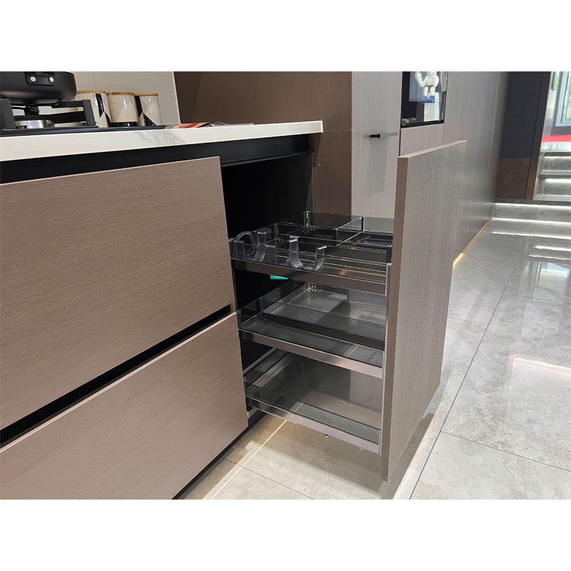 Karkas, tanınmış markaların üreticilerinden çevresel sunta ve donanımı benimser. SINOAH her zaman tüm aileler için hem doku, hem güvenlik hem de dayanıklılık sağlayan dolaplar sunar. Akıllı mutfak üst düzey Laminat mutfak dolaplarının içi, ihtiyaçlarınıza göre çeşitli fonksiyonel donanımlarla donatılabilir ve mutfak malzemeleri sıralanabilir ve yerleştirilebilir. Kabinin içindeki alan, açılır saklama sepetleri ve döner tablalı depolama rafları gibi yaratıcı tasarımlarla tam olarak kullanılabilir, bu da günlük yemek pişirmeyi ve yemek yemeyi daha rahat ve konforlu hale getirir.