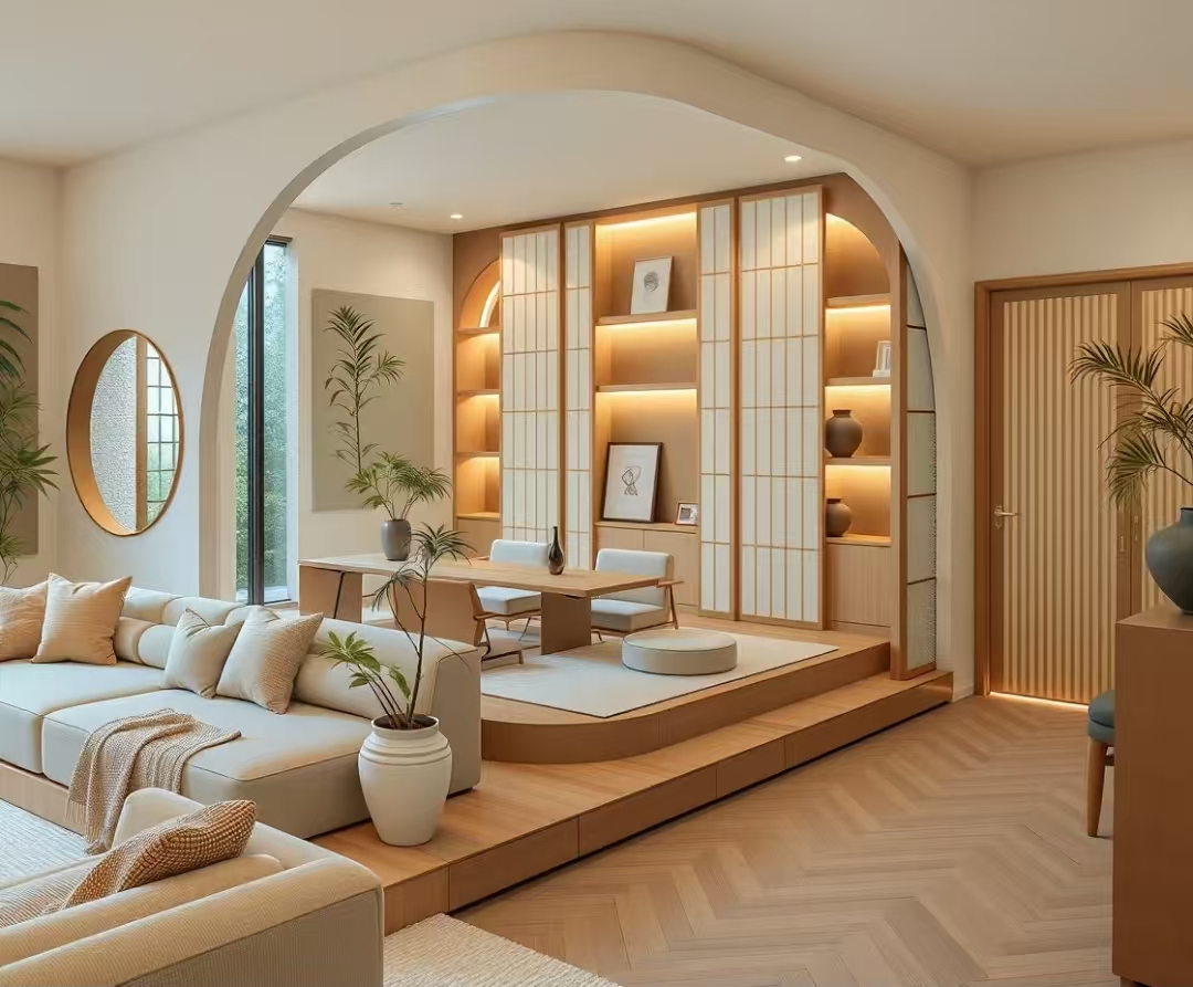 Kemerli bir kapı ve bir platformla eşleştirilmiş, görsel alanı güçlendiren ve katmanları zenginleştiren!
